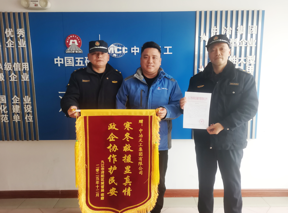 近日,九江市城市管理綜合行政執(zhí)法局相關(guān)領(lǐng)導(dǎo)專程來到華南公司九江水環(huán)境治理項(xiàng)目部,將一面印有“寒冬救援顯真情,政企協(xié)作護(hù)民安”的錦旗送至項(xiàng)目負(fù)責(zé)人手中,對(duì)項(xiàng)目部與分包單位員工英勇救助落水群眾的行為給予高度贊揚(yáng)。此次救援行動(dòng)是政企聯(lián)動(dòng)、共護(hù)平安的生動(dòng)實(shí)踐,也展現(xiàn)了項(xiàng)目部履行社會(huì)責(zé)任的擔(dān)當(dāng)。