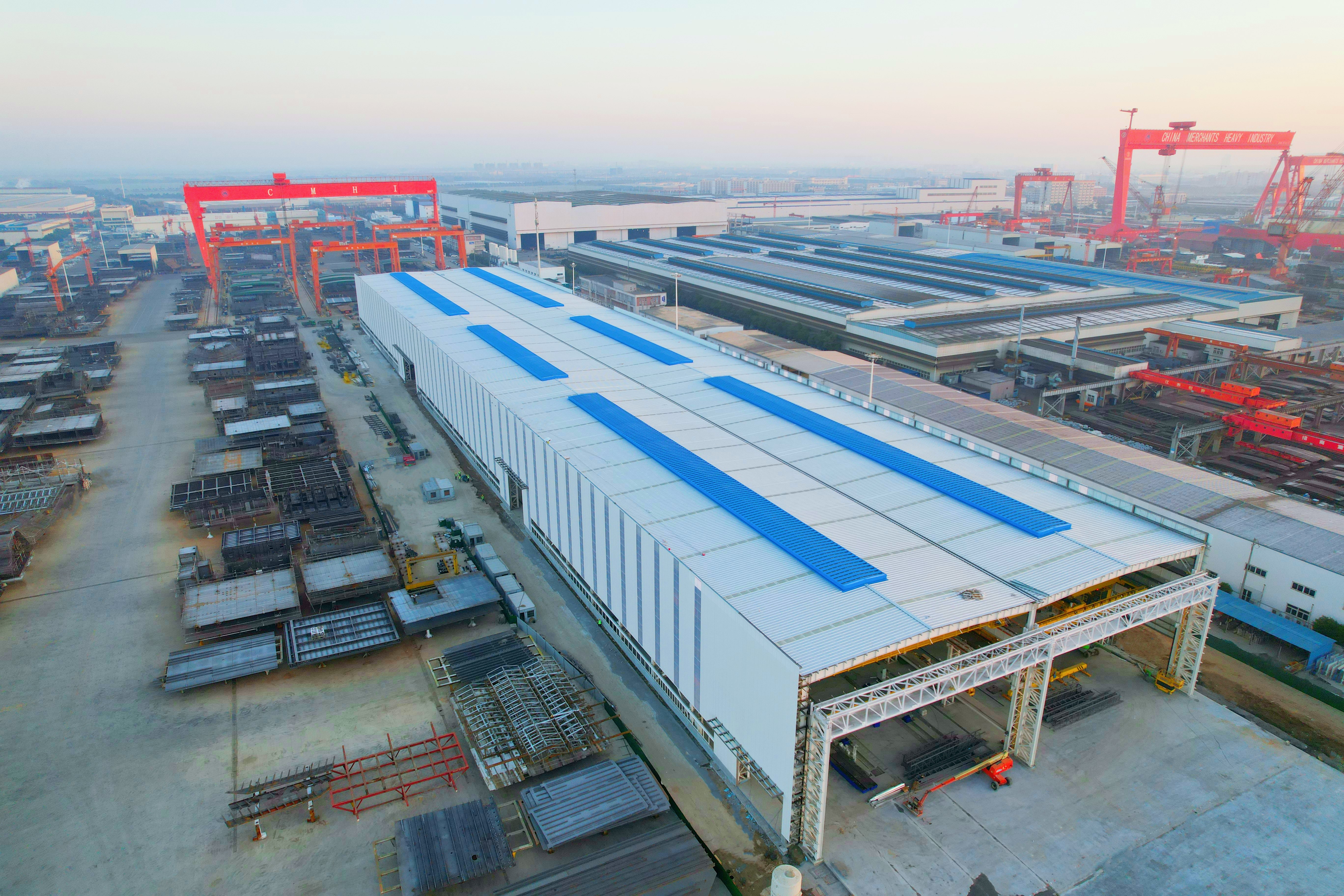 該項(xiàng)目位于江蘇省南通市海門區(qū)招商局郵輪制造有限公司廠區(qū)內(nèi),為單層鋼結(jié)構(gòu)廠房。軸線總長(zhǎng)348.5米,軸線總寬66.35米,建筑最大高度為28.05米,鋼結(jié)構(gòu)工程共計(jì)4600噸。作為招商船舶工業(yè)集團(tuán)2024年重點(diǎn)工程,項(xiàng)目集創(chuàng)新設(shè)計(jì)、先進(jìn)工藝與品質(zhì)建造于一體,建成后將為船舶工業(yè)實(shí)現(xiàn)車間級(jí)智能化生產(chǎn)提供全新解決方案,有力支撐高端船舶制造提質(zhì)升級(jí)。