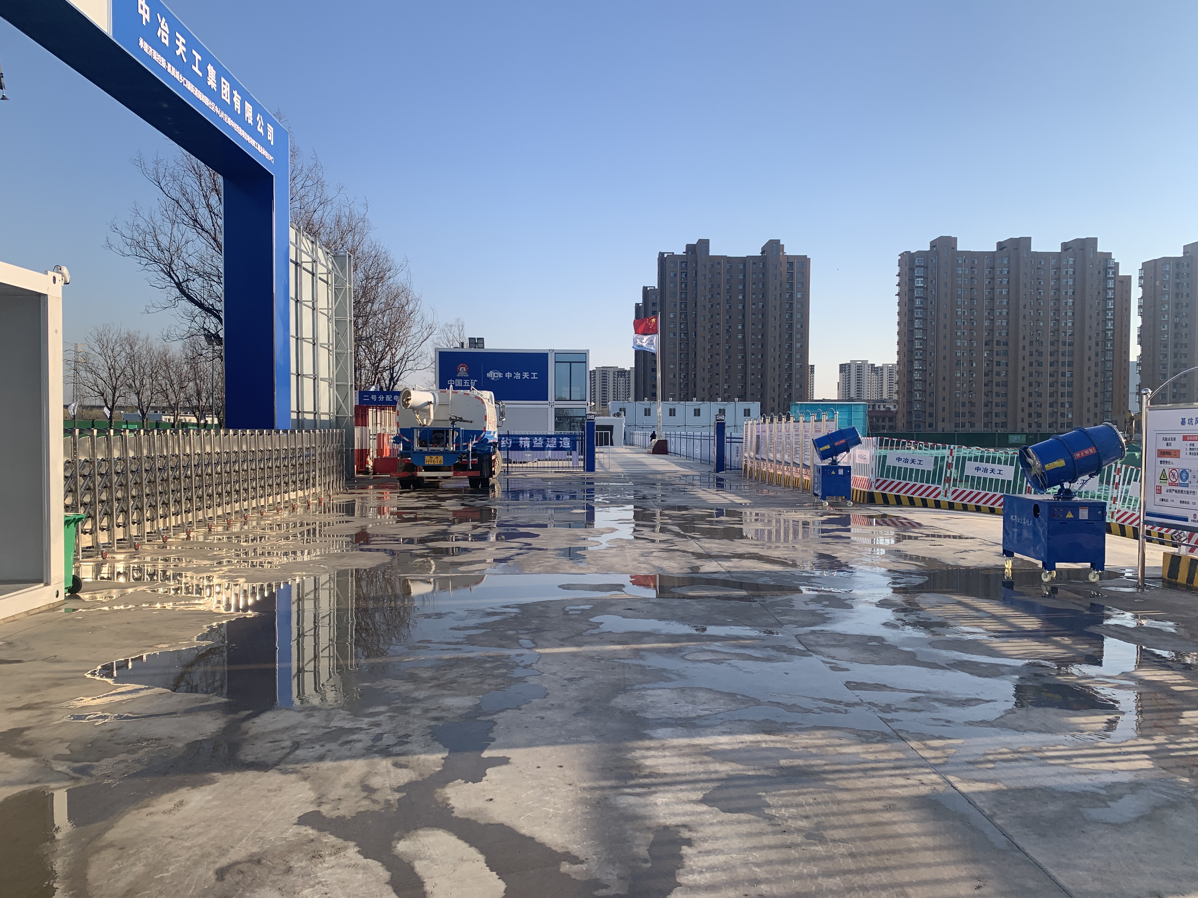 項目團隊始終堅持“預防為主、綜合治理、精細管控”原則,多措并舉打造綠色文明工地。硬件防控全覆蓋,設置全封閉標準圍擋、配備高頻霧炮噴淋、裸土全面覆蓋,從源頭抑制揚塵產(chǎn)生;現(xiàn)場管理無死角,落實專人保潔、定期灑水降塵、常態(tài)化自查自糾,實現(xiàn)揚塵管控閉環(huán)管理;責任體系嚴壓實,強化建設、施工、監(jiān)理三方協(xié)同,明確崗位職責,確保各項防治措施落地見效。