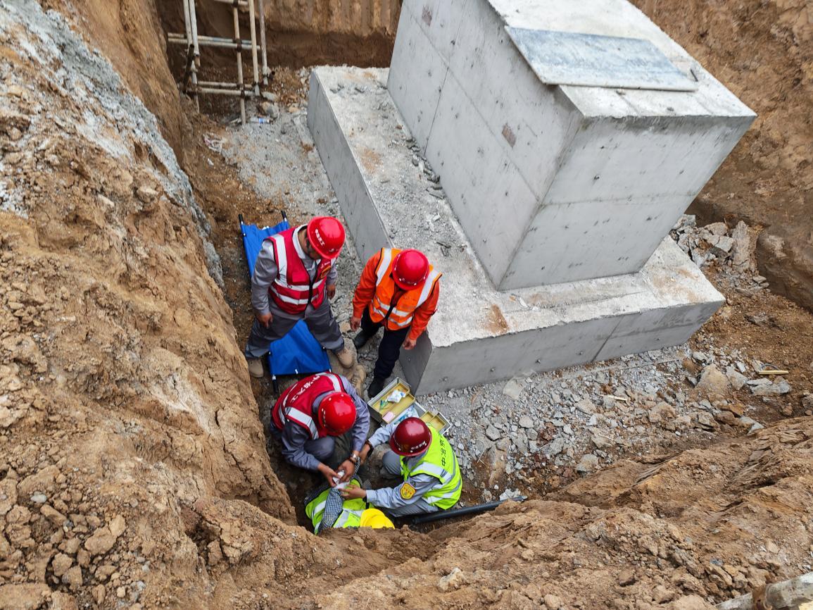 本次演練籌備周密、組織有序。項目部提前成立以項目經理為總指揮的應急演練指揮領導小組,精心編制專項演練方案,明確事故場景、實施流程、小組分工及評估標準。演練前,項目部組織開展專項培訓,圍繞基坑施工安全風險辨識、坍塌事故前兆特征、應急響應流程及救援技能進行系統講解,為演練高效開展夯實理論基礎。