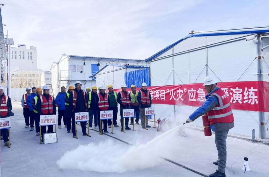 此次演練模擬場景為工人宿舍線路短路引發火情。發現火情后,現場人員第一時間進行上報,項目立即啟動應急救援預案,各參演小組嚴格遵循“一分鐘響應、三分鐘處置、五分鐘聯動”原則,迅速完成安全警戒、初期火災撲救、人員疏散、物資隔離及現場調查等流程,整個演練過程緊張有序,各小組分工明確,充分驗證了項目部消防應急預案的可行性與有效性。